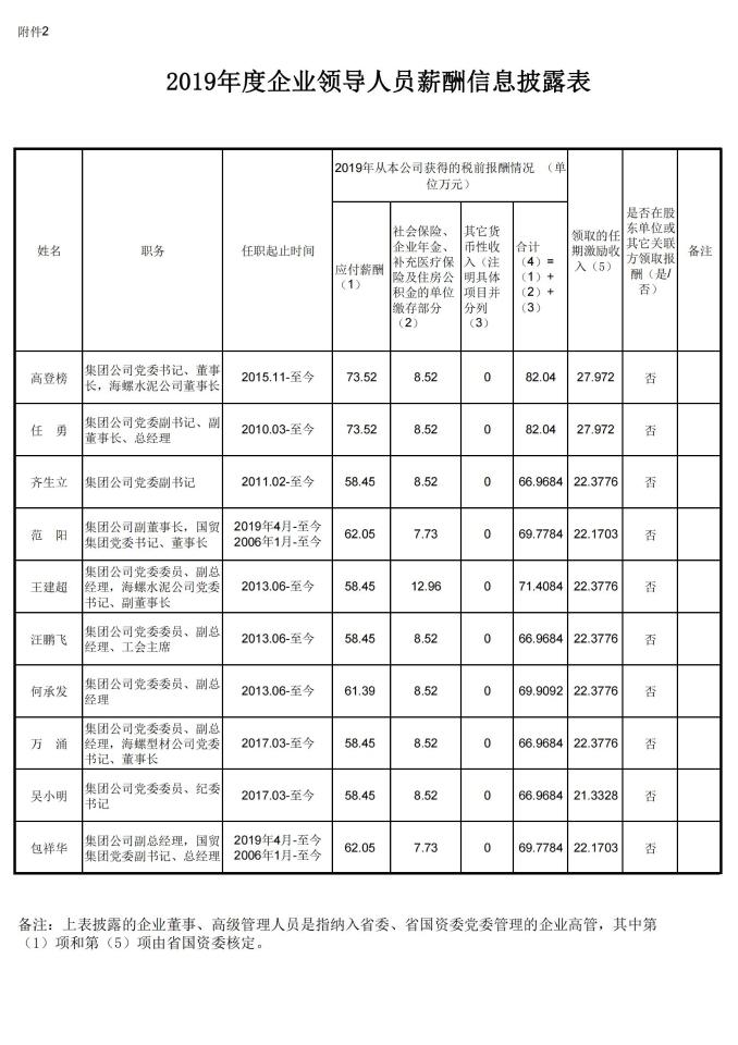 2019年度企業(yè)領(lǐng)導(dǎo)人員薪酬信息披露表
