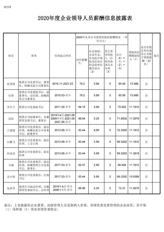 2020年度企業(yè)領(lǐng)導(dǎo)人員薪酬信息披露表