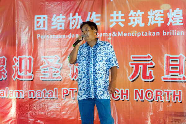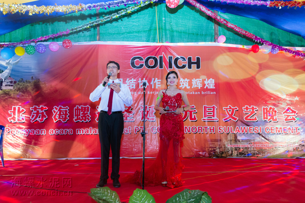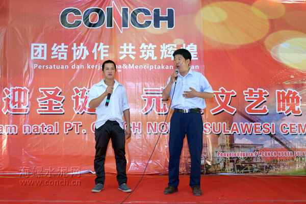 北蘇海螺總經(jīng)理曾國(guó)華、PT.SULENCO BOHUSAMI CEMENT公司董事長(zhǎng)卓瑞瑞分別為晚會(huì)致辭。他們表示,從2015年5月5日海螺水泥與PT.SULENCO BOHUSAMI CEMENT公司正式簽約并成立北蘇海螺水泥公司以來(lái)的一年半時(shí)間里,在各方的幫助與支持下,北蘇海螺全體干部員工只爭(zhēng)朝夕、奮力拼搏,項(xiàng)目已全面進(jìn)入設(shè)備安裝階段,進(jìn)展之快,不但創(chuàng)造了印尼國(guó)之最,也創(chuàng)造了中國(guó)海外投資之最。展望即將到來(lái)的一年,讓我們更加緊密的團(tuán)結(jié)起來(lái),共筑輝煌!曾總代表公司感謝各位朋友、嘉賓的到來(lái),向中國(guó)籍、印尼籍員工致以節(jié)日的問(wèn)候。