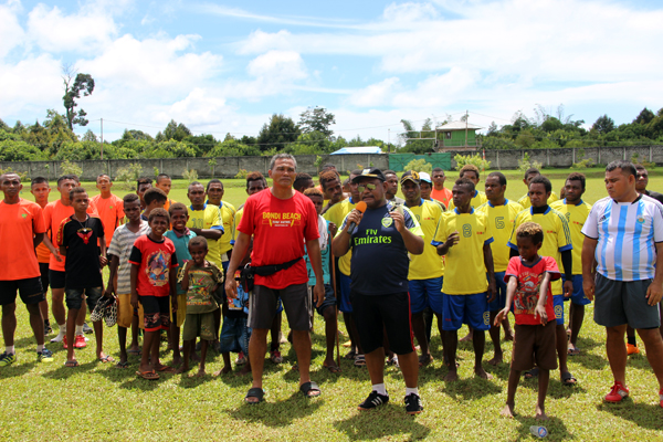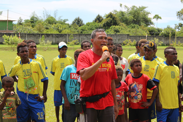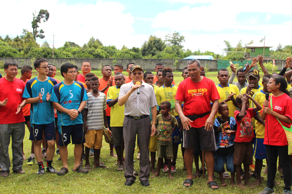 決賽開賽前,西巴公司總經(jīng)理俞越應(yīng)邀即興發(fā)言,他首先代表國投印尼巴布亞水泥有限公司全體干部員工,對本次足球盛會表示衷心的祝賀,對積極參加比賽的各代表隊(duì)和所有愛好足球的朋友們表示熱烈的歡迎,對裁判員和籌備比賽的工作人員表示誠摯的感謝!他希望通過本次足球友誼賽,能夠讓更多的人們了解西巴公司,支持西巴公司。他表示,公司將更加積極地融入當(dāng)?shù)厣鐣?,與大家建立更加緊密的關(guān)系,共同為建設(shè)美好的馬諾夸里而努力。他表示,相信通過首屆“海螺水泥杯”足球友誼賽的舉辦,公司與地方軍政部門及廣大村民間的友誼會像“海螺”牌水泥一樣,日久彌新,愈經(jīng)風(fēng)雨,愈加穩(wěn)固!