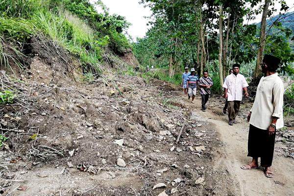 2月21日上午9時(shí),印尼北蘇海螺駐地的lolak鎮(zhèn)鎮(zhèn)長攜Lolak警察局局長、solog村村長、solog村穆斯林長老等十余人到北蘇海螺公司拜訪,尋求幫助。距北蘇海螺3公里處的solog村部分道路出現(xiàn)了大規(guī)模山體滑坡的險(xiǎn)情,鎮(zhèn)長一行希望北蘇海螺伸出援手。